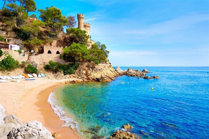 Příjezd na pobřeží Costa Brava/Maresme poblíž Barcelony, v odpoledních