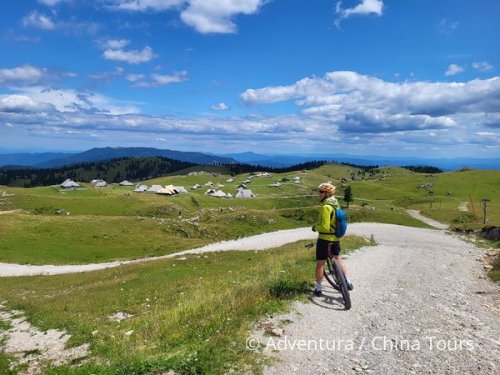 4. denNa kole z historického města Kamnik k pramenům říčky Kamnická Bistrica a ze soutěsky poté lanovkou na Velikou Planinu – náhorní plošina s typickými dřevěnými pastýřskými domky a výhledy na okolní hory a pastviny; dlouhý panoramatický sjezd a dojezd do kempu (50–58 km / ↑600 m).