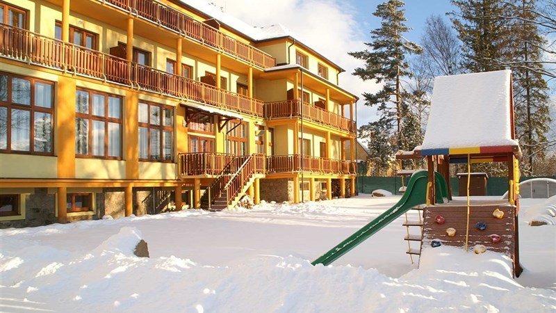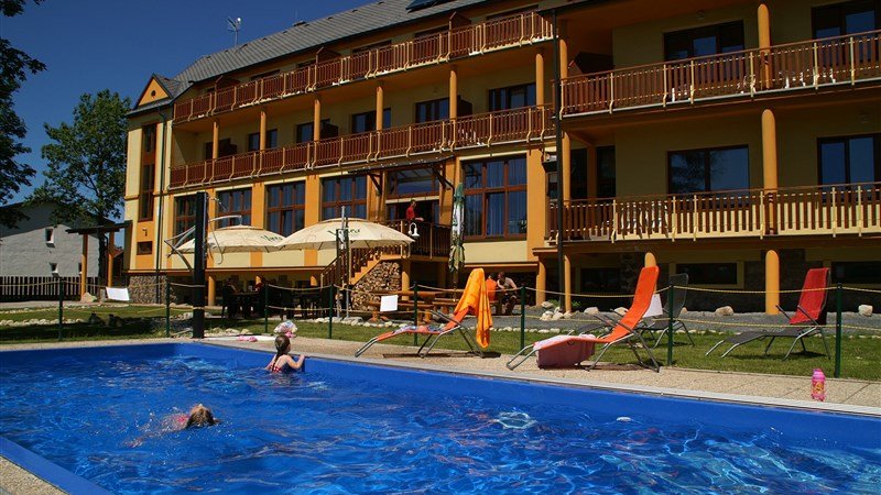 ZDARMA:neomezený vstup do venkovního hotelového bazénu (květen – září), 1× za pobyt hodinový vstup do privátního wellness (sauny finská a infra, hydromasážní vana) ), při pobytu na 6 a více nocí 2× za pobyt vstup do privátního wellness – na 1 hodinu – (sauny finská a infra, hydromasážní vana) Dále zdarma: místnost na odkládání kol, kočárků, venkovní dětské hřiště, vnitřní dětský koutek, parkování – kamerový systém, Wi-Fi internet na pokojích