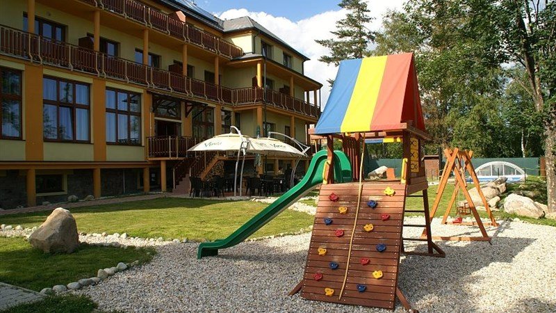 Venkovní hotelový bazén (8×4 m), zakrytý plastovou střechou. Celoroční termální aquapark v Popradu (19 km) – 3 venkovní bazény s termální vodou (28–38° C), relaxační, sedací a rekondiční bazény, 2 celoroční tobogány Twister a Černá díra, vodní fontány, hřiby, 2 kryté bazény BLUE DIAMOND bazény s holografickými „živými“ obklady, nápojovými bary s posezením přímo ve vodě nebo u bazénu (oba bazény obsahují vysoce koncentrovanou minerální vodu a jsou nejcennějšími klenoty v koruně AquaCity), masážní trysky, bublinkové lavičky a protiproudy pro kondiční plavání, odpočinkové a relaxační prostory s nápojovými bary, kryté relaxační bazény Blue Sapphire s chromoterapií (léčba světlem), masážní trysky a lehátka, perličková koupel. Krytý 50-ti metrový plavecký bazén olympijských rozměrů, krytý dětský bazén, parní sauny. Vitální svět AquaCity – 6 uklidňujicích saun, které využívají aromaterapii na pozadí smyslné hudby, klasická finská sauna, parní sauna, sněhová jeskyně, ochlazovací bazén, inhalační místnosti (květinová, bylinková, eukalyptová, solná), tepidárium a kaldárium, masážní vířivka, vodní cesta a masážní sprcha, tropický a arktický déšť. Thermal park (30 km) plavecký bazén 35 m dlouhý (26°C), sedací bazén s masážními tryskami (38°C), relaxační bazén (30°C), bazén Motýl s termální vodou (36–38°C), dětské bazény. Termální voda má dobré účinky na pohybové, nervové a dýchací ústrojí, nemoci srdce.