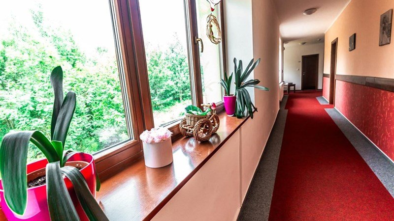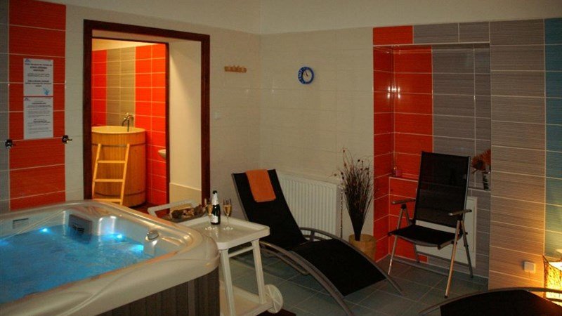 Restaurace, bar, krytý venkovní bazén (v provozu květen až září), dětský koutek, dětský koutek v restauraci, dětské venkovní hřiště, herna se stolním fotbalem, el. šipkami a spol. hrami, fitness koutek (základní posilovací stroje, steper a stacionární kolo), parkoviště monitorované kamerovým systémem. Privátní wellness: finská sauna, infrasauna, vířivka, hydromasážní box. Možnost doobjednání masáží.