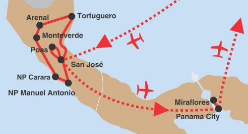 Dvě nejrozvinutější země Střední Ameriky oplývají množstvím přírodních atrakcí. Na tomto poznávacích zájezdu Vám nabídneme to nejlepší z obou zemí. Obdivujte přírodu nejen pohledem vleže na pláži, ale také nad pralesem ze závěsných lávek v Monteverde. Zažijete osvěžující koupel v termálech pod Arenalem a odpočinete si na plážích v Manuel Antonio. Návštěva Kostariky by nebyla kompletní bez NP Tortuguero. Vaši cestu završí plavba Panamským průplavem a prohlídka Panama City.
