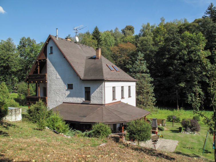 Zlatá Olešnice, 16 km od Tanvald: Dříve mlýn s vlastní elektrárnou a sklárnou, dnes rodinná vila u potoka Zlatník s romantickou polohou. Ideální pro rodiny s dětmi. Pěkný, historický rodinný dům „Zlata Olesnice“, 2-podlažní, renovovaný v roce 2004. Pod Zlatá Olešnice, na kraji obce, samostatně stojící, klidná, slunná poloha, 50 m od lesa, 20 m od potoka, ve slepé ulici, v zeleni. K dispozici pouze pro Vás: pozemek 4'000 m2, zahrada 1'000 m2 (oplocená) s trávníkem a stromy, rybník. Zahradní sezení (20 m2), terasa (30 m2), zahradní nábytek, gril, ohniště, dětské hřiště (skluzavka, houpačka). V domě: lyžárna, ústřední topení, pračka. Příjezd vede až k objektu. Parkovací místo (kryté) u domu. Potraviny, restaurace 800 m, autobusová zastávka 300 m, koupaliště 800 m, krytý bazén 20 km. Vlek 1.5 km, lyžařské centrum 18 km, lyžařské sjezdovky 5 km, lyžařská škola 18 km, dětská lyžařská škola 5 km, běžkařské stopy 50 m.
