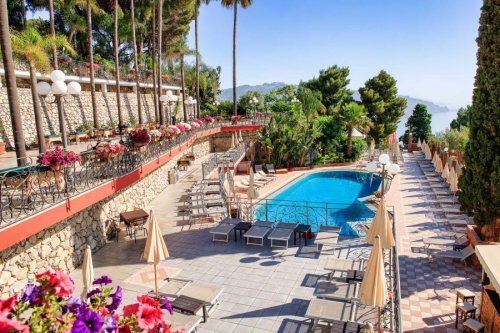 výhledy na pobřeží a nachází se v samotném srdci Taorminy v pěší
