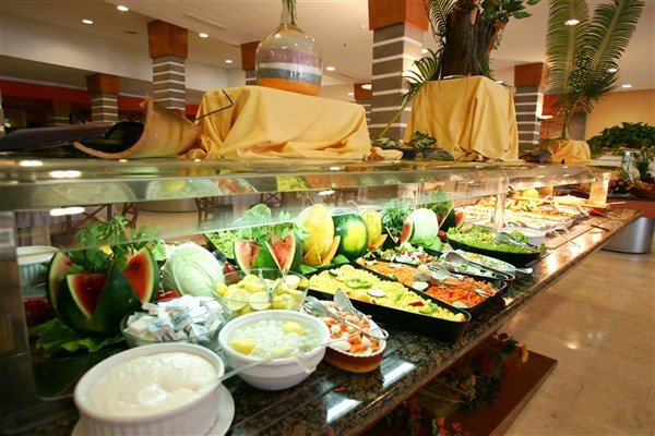 Program all inclusive zahrnuje plnou penzi formou švédských stolů v hotelové restauraci, lehké občerstvení u bazénu, nealkoholické a alkoholické nápoje místní výroby během dne.
