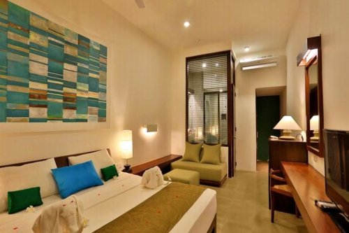 TEMPLE TREE RESORT & SPA 4:Hotel Temple Tree se nachází na jihozápadě Srí Lanky, 5 minut jízdy od vyhlášeného města Bentota, konkrétně v pobřežním městě Induruwa. Hotel disponuje celkem 32 prostornými, stylově navrženými a klimatizovanými pokoji typu Standard s vlastní koupelnou s WC, balkónem s výhledem na moře, Wi-Fi připojením, satelitní LCD TV, minibarem, trezorem a příslušenstvím pro přípravu kávy a čaje. Dále je zde 9 Deluxe pokojů s vlastní jacuzzi, 2 Executive Suite a 1 Presideltial Suite. V hotelu jsou 2 velké plavecké bazény, včetně zabudovaného lázeňského bazénku, či samostatné lázně s širokou paletou procedur pod dohledem odborně vyškoleného personálu. Hoteloví hosté mohou využívat bezplatného Wi-Fi v celém areálu hotelu. Hotel taktéž zajišťuje nejrůznější výlety a exkurze. Součástí hotelových služeb je 24h pokojová služba a bezplatné parkoviště pro hotelové hosty. Hlavní hotelová restaurace je koncipována jako otevřený restaurant s výhledem na moře. Podávají se zde pokrmy místní kuchyně. Na Vaši žádost lze zařídit stravování přímo na hotelovém pokoji. Temple Tree Resort je vzdálený 2,5h jízdy autem od mezinárodního letiště Bandaranaike.