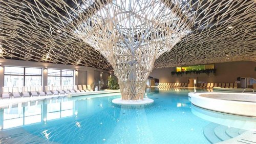 - Velký venkovní i vnitřní bazén – podvodní masáže, římské koupele, gejzíry, rychlá řeka, vodopád a vodní trysky (teplota vody 30–32 °C)