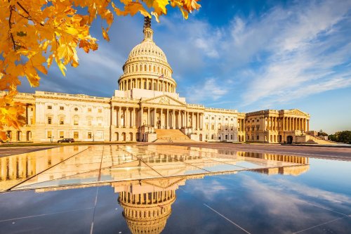 Kapitolu – v němž zasedá Kongres, monumentu prvního prezidenta USA
