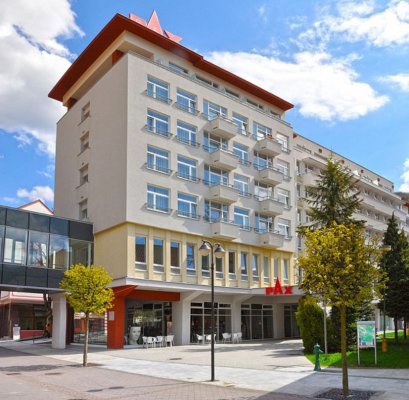 Oblíbený zrekonstruovaný lázeňský hotel se nachází v centru města na pěší zóně. Díky své ideální poloze v blízkosti lázeňského parku ale i kulturním památkám (historická odpočívárna Hamman) vytváří příjemnou atmosféru, která přináší hostům ideální podmínky na léčbu a relax. Na prvním poschodí je situovaná restaurace, kde je podávána strava v rámci pobytů a na 6. poschodí je příjemná kavárna s nádherným výhledem do okolí. Hotel je propojen spojovacími chodbami s budovami, kde se poskytují procedury. Lékařská ordinace a některé procedury jsou hostům k dispozici přímo v hotelu Pax. V hotelu je dále k dispozici recepce s nepřetržitým provozem, kosmetika, denní kavárna, směnárna, sluneční terasa a několik výtahů. Pokoje Comfort – 1 a 2 lůžkové pokoje se sprchou a WC, TV, Wifi připojením, rádiem, telefonem, chladničkou, varnou konvicí, trezorem, fénem.