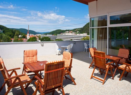 Oblíbený zrekonstruovaný lázeňský hotel se nachází v centru města na pěší zóně. Díky své ideální poloze v blízkosti lázeňského parku ale i kulturním památkám (historická odpočívárna Hamman) vytváří příjemnou atmosféru, která přináší hostům ideální podmínky na léčbu a relax. Na prvním poschodí je situovaná restaurace, kde je podávána strava v rámci pobytů a na 6. poschodí je příjemná kavárna s nádherným výhledem do okolí. Hotel je propojen spojovacími chodbami s budovami, kde se poskytují procedury. Lékařská ordinace a některé procedury jsou hostům k dispozici přímo v hotelu Pax. V hotelu je dále k dispozici recepce s nepřetržitým provozem, kosmetika, denní kavárna, směnárna, sluneční terasa a několik výtahů. Pokoje Comfort – 1 a 2 lůžkové pokoje se sprchou a WC, TV, Wifi připojením, rádiem, telefonem, chladničkou, varnou konvicí, trezorem, fénem.