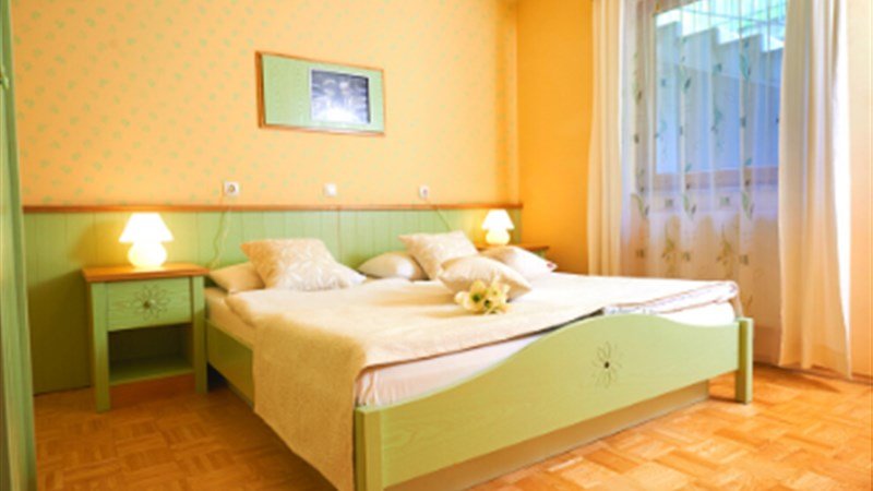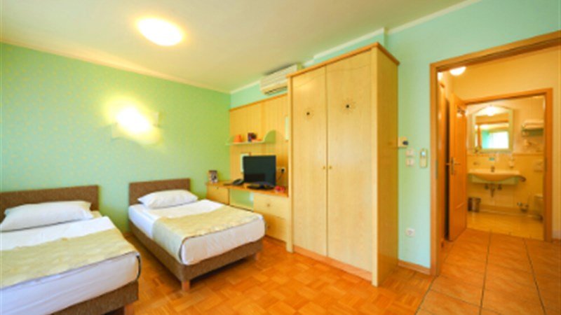 a) 2 – lůžkový pokoj v apartmánovém domě (24 m), Spr.+ WC, TV, fén, telefon, manželské lůžko. Některé s balkonem. b) 2+2 apartmán A4 (45 m), Spr.+ WC, TV, fén, obývací kuchyň s posezením a s rozkládacím gaučem (přistýlka pro max. 2 děti do 11,9 let nebo 1 dospělou osobu), ložnice s manželským lůžkem, terasa c) 2+3 apartmán A5 (45 m), Spr.+ WC, fén, obývací kuchyň s rozkládací pohovkou (přistýlka pro max. 2 děti do 11,9 let nebo 1 dospělou osobu), ložnice s manželským a jedním samostatným lůžkem, terasa.