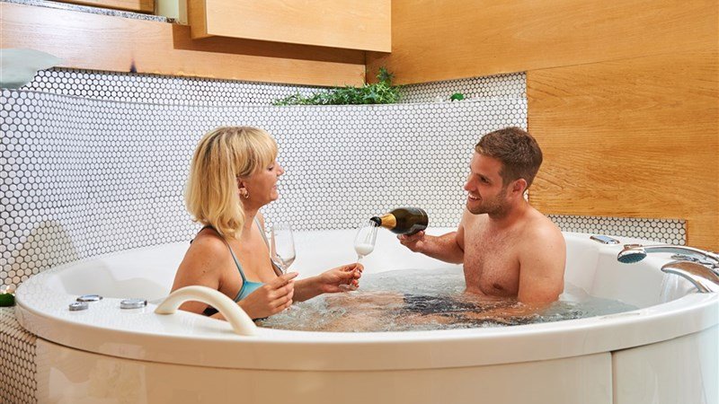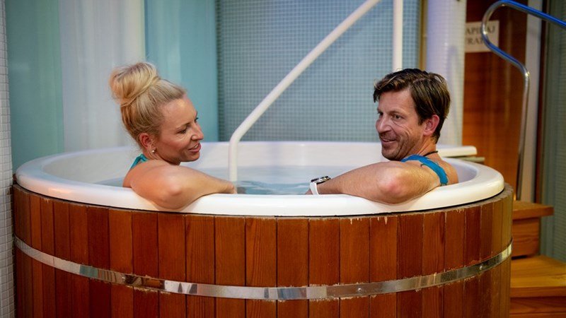 Recepce, parkoviště u apartmánových domů i u termálního areálu – i pro obytné automobily, restaurace Potočka s vlastní zeleninovou i bylinkovou zahradou, termální bazénový komplex s vnitřními bazény (32°C), vířivý bazén (36°C), wellness (fyzioterapie, masáže, péče o obličej a tělo, Kneippovy obklady, zábaly, masáže) a saunovým světem ( finská, turecká a ledová sauna, privátní sauna pro dva), venkovní bazén s tobogány (26°C – 28°C) a travnatou pláží. K dispozici jsou lehátka. Kneippova stezka v délce 3,2 km. V areálu termálních lázní se nachází osm apartmánových domů, vybudovaných z přírodních materiálů a umístěných na kraji lesa. Pod nimi je umístěn termální komplex venkovních a vnitřních bazénů.