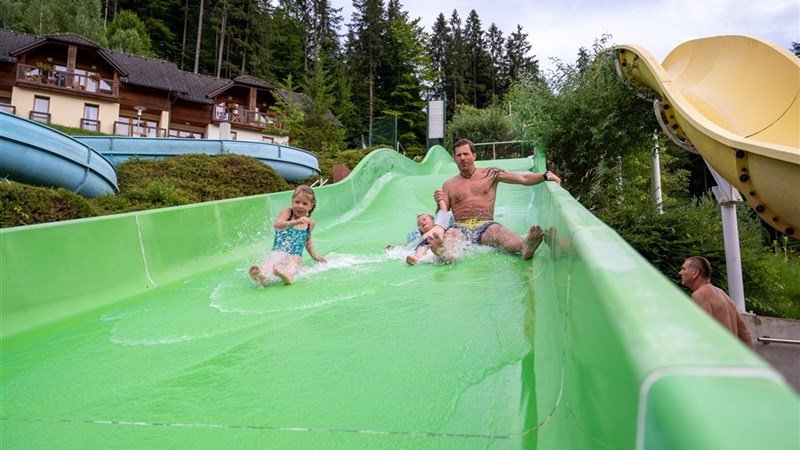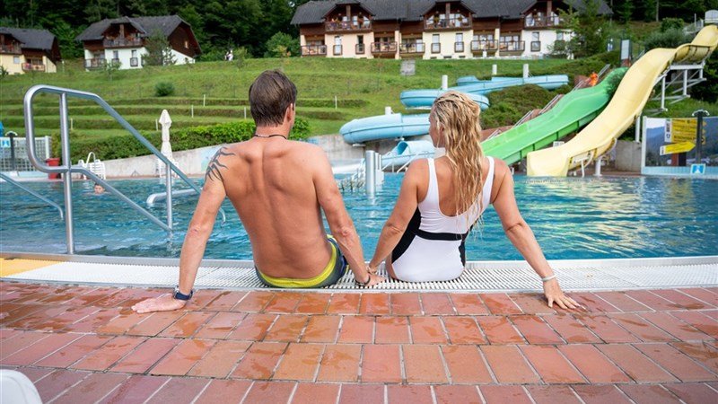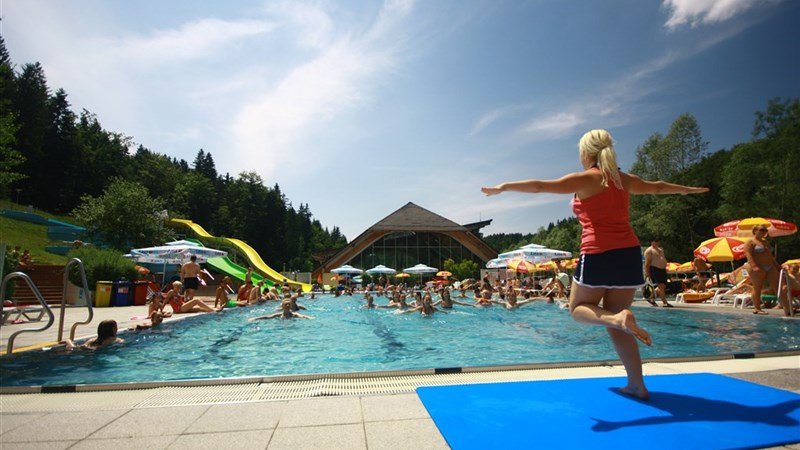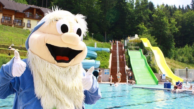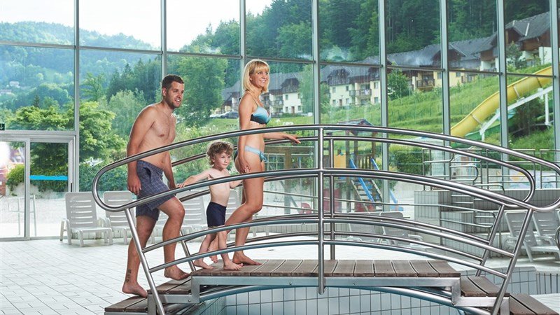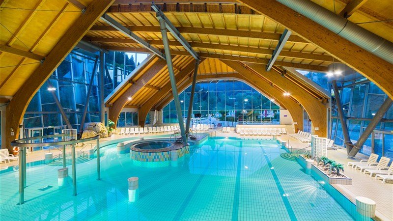Venkovní i kryté termální bazény v areálu terme Snovik – tobogány, relaxační bazén
