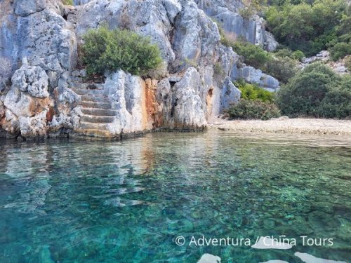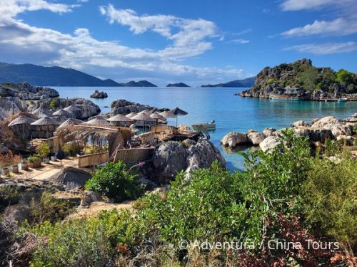 8. denDen bez kol: vyhlídková plavba kolem ostrova Kekova s antickým městem částečně potopeným při zemětřesení pod hladinu moře; procházka na hrad Simena a prohlídka nekropole; pozdní oběd v poklidné atmosféře malého přístavu; transfer do Antalye, sbalení kol.