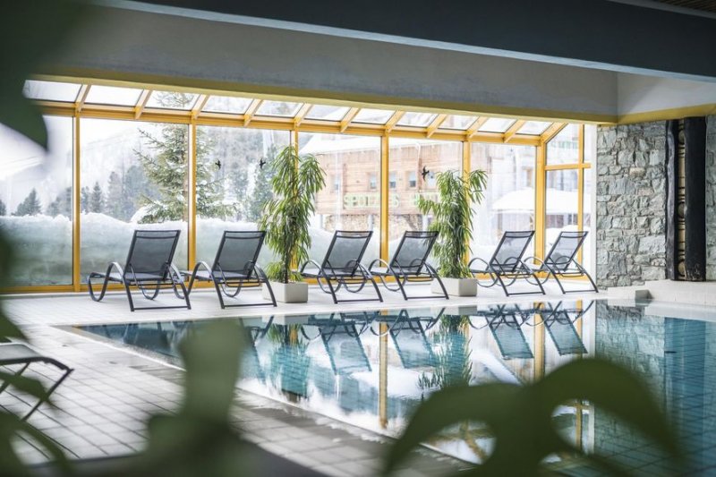 Vybavení K vybavení hotelu patří recepce (07.30–20.30, změny vyhrazeny), vstupní hala s možností posezení, Wi-Fi v celém hotelu, výtah, snídaňový salonek, salonek a hotelový bar „Zirbenstube“. Ve venkovní části je terasa. Své zimní sportovní vybavení si můžete po dobu pobytu odložit ve vytápěné lyžárně na lyže a snowboardy s vysoušečem lyžařských bot. Hosté mají podle dostupnosti k dispozici garážové stání (carport) a parkovací místa (za poplatek).