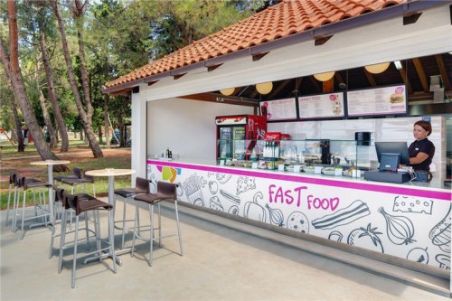 Recepce, restaurace, pizzerie, snack bar na pláži, market, venkovní bazén se sladkou vodou pro dospělé a děti, lehátka zdarma (omezené množství), WiFi v prostorách recepce zdarma, parkování cca 2 EUR/auto/den. V letovisku jsou trhy a superarket. Tenisové kurty, minigolf, plážový volejbal, stolní tenis, basketbal, házená, fotbal, badminton, jezdecké centrum, půjčovna kolo, mini club, v termínu 12.07.-21.07. ve středisku Stella Maris Resort tenisový turnaj ATP (různé celodenní a večerní programy do ranních hodin).Všechny apartmámy mají kuchyňský kout, ledničku, mikrovlnnou troubu, kávovar, sociální zařízení, telefon, trezor, SAT TV, klimatizaci, balkon nebo terasa, WiFi zdarma. Apartmán pro 4 osoby AP4 – má 2lůžkovou ložnici a obývací místnost s rozkládacím gaučem pro 2 osoby.Apartmán pro 5 osob AP5 – má 2lůžkovou ložnici, obývací místnost s rozkládacím gaučem pro 2 osoby a rozkládacím křeslem pro 1 osobu.