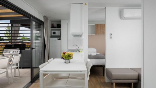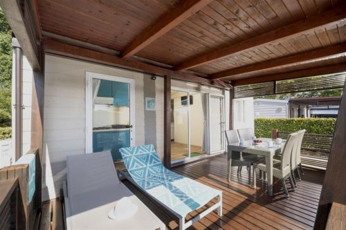 Mobilhome typu Classic o výměře cca 24 m2 se skládá z ložnice s manželskou postelí, samostatného pokoje se 2 samostatnými lůžky, koupelnou, plně vybaveného kuchyň. koutu s rozkládací pohovkou a terasy s venkovním posezením. Dále je zde k dispozici klimatizace, SAT/TV, WiFi připojení. Mobilhome je maximálně pro 4 dospělé osoby a 2 děti do věku 11,99 let. Domácí mazlíčci jsou povoleni v tomto ubytování.