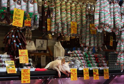 ideálním místem nákupů maďarských specialit – klobás, čabajky,