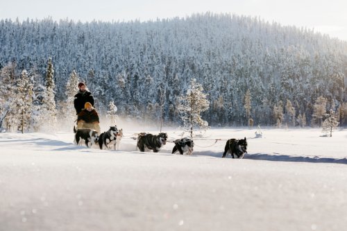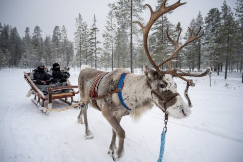 farmu a v saních tažených soby se projedet ztichlou zimní krajinou.