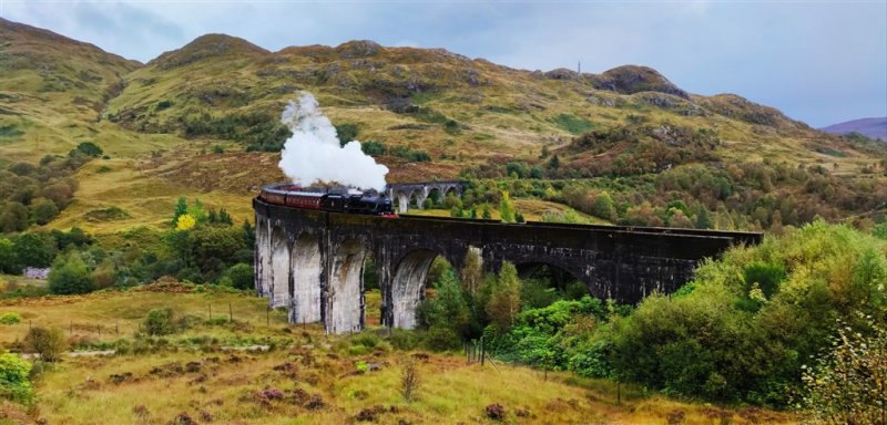 2. den: Snídaně, ve FORT WILLIAM nastupujeme na světově proslulý parní vlak přezdívaný „HOGWARTS EXPRESS“. Na své cca 1,5h cestě přejedeme impozantní most GLENFINNAN VIADUKT, již navždy spojený se záběry vlaku mířícího do Bradavic. Po zbytek cesty se budeme kochat panoramatickými výhledy na SKOTSKOU VYSOČINU na jedné straně a na zálivy ATLANTIKU na druhé. Vlakem dojedeme až do posledního městečka na pevnině MALLAIG, odkud se nám naskytnou krásné výhledy až na ostrov SKYE. Zpět se již vydáme naším mikrobusem, díky čemuž si vychutnáme průjezd vlaku přes viadukt z vyhlídky. Krátkou prohlídkou FORT WILLIAMU zakončíme náš první „čarodějnický“ den. Večeře. (Jízdenka na vlak musí být objednána předem a její dostupnost lze předpokládat pouze při včasné rezervaci).