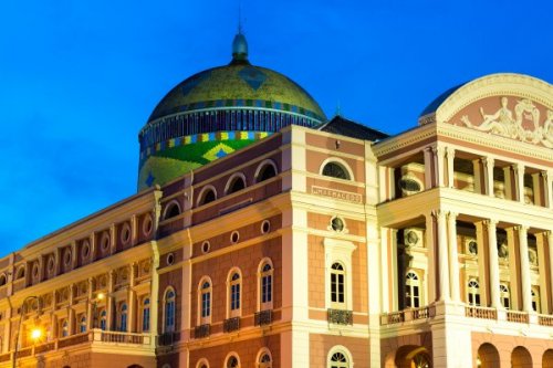 řek Amazonka a Negro (budova opery Teatro Amazonas z dob kaučukového