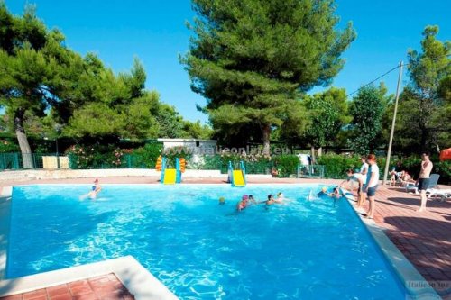 Příjemné prázdninové středisko Camping Village Capo Vieste se rozkládá asi 8 km od Vieste směrem na Peschici. Navazuje přímo na krásnou písečnou pláž ohraničenou útesem. Ubytování je v pohodlných mobilhomech vzdálených asi 150 m od pláže. Za zmínku stojí areál raně křesťanské nekropole, který se nachází přímo u střediska. Klientům je k dispozici recepce, bar, restaurace/pizzerie, parkoviště, minimarket, bazén pro děti, tenisový kurt, dětský koutek a animace (přibližně od poloviny června do začátku září).