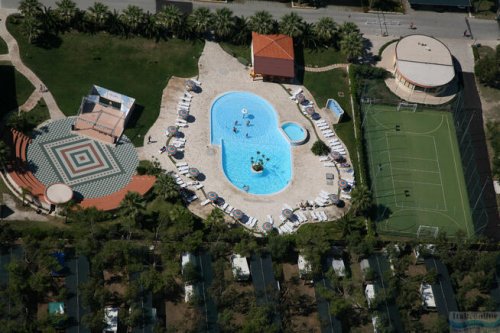 uprostřed poklidné zeleně v okolí bazénu s hydromasáží. V resortu se