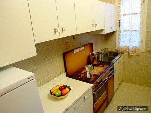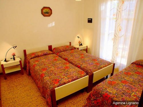 příjemná řadová vilka o 6 apartmánech, v prvním patře nebo v přízemí, nachází se v klidné části, 50 m od písečné pláže Lignano Riviera.
