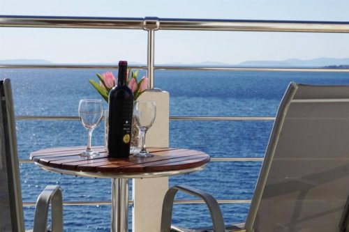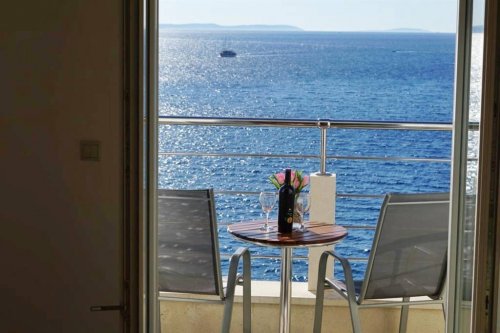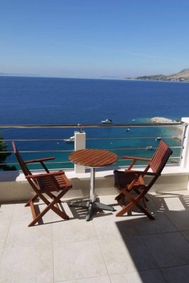 luxusní apartmánová vila kategorie se nachází přímo nad krásnou pláží s jemnými oblázky. Pláž je přístupná po schodišti přímo od domu. Všechny apartmány jsou orientované směrem na moře a ze všech balkónů je krásný výhled na moře. Vila je přístupná osobním autem s možností parkování přímo u domu (garáž a stání pro 2 auta), další místa nebo místa pro větší auta jsou na privátním parkovišti asi 100 m od domu. Parkování je zdarma.