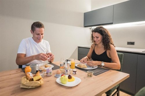 - Moderní a udržitelné apartmány pro 2–4 osoby (denně uklízeny)