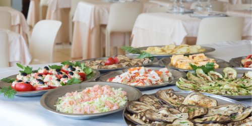 apartmány bez stravy, pokoje v hotelu polopenze nebo plná penze (bez nápojů). Hosté ubytovaní v apartmánech mají možnost přikoupit si stravování v hotelové restauraci: bufetová snídaně, obědy a večeře servírované s výběrem ze tří 1. a 2. chodů.