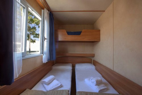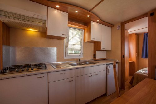v zelené oáze luk, zahrad a květin se nachází 294 zděných bungalovů a 100 mobilhomů. Ubytování možné pro 4–6 osob trilo B2B pro 6 osob komfort – nedávno postavené, rozdílné od standardních mobilhomů modernějším zařízením, 2 ložnice, v jedné palanda, rozkládací gauč v obývací části, sociální zařízení, kuchyňský kout, veranda.