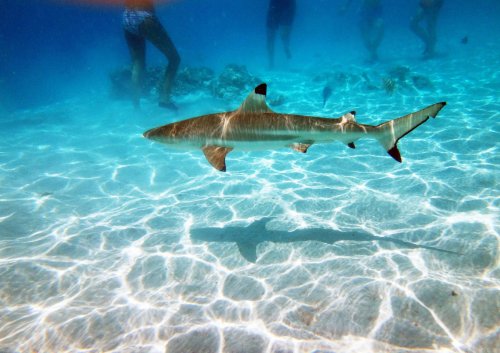 dominuje mu majestátní silueta hory Otemanu. Možnost vydat se za žraloky a