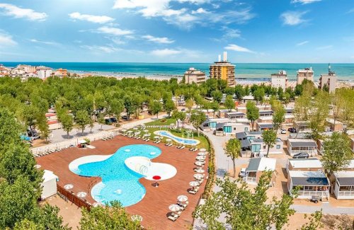 Dokonalá rodinná dovolená v kempu Rimini Family Resort s bazénem, plážovým servisem v ceně a animacemi pro děti! Ubytování pro až 6 osob!