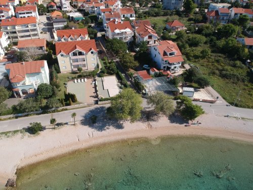Apartmánový komplex se zahradou a terasou na opalování s lehátky se nachází přímo u pláže v letovisku Srima. Na sezónu 2023 prošel celý komplex velkou rekonstrukcí. Od pláže ho dělí pouze pobřežní promenáda. Živé centrum Vodic je vzdáleno 2 km po pobřežní promenádě a pohodlně se tam dá dostat i turistickým vláčkem. V okolí apartmánů je řada restaurací, stánků se zmrzlinou, kafebarů. Supermarket je 200 m od apartmánů. Komplex se skládá ze dvou stejných za sebou stojících budov – budova A má 6 apartmánů s čelním výhledem na moře, ostatní apartmány mají boční výhled. VYBAVENÍ: standardně vybavené apartmány nabízejí hostům vše pro příjemnou dovolenou přímo u moře. K dispozici je zahrada s lehátky na opalování, 2 grily s posezením. Parkování je možné přímo u apartmánů nebo možnost využít podzemní garáže za 5,– EUR/den. K dispozici je i wi-fi připojení k internetu.