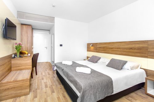 Imperial Park hotel se nachází přímo u oblázkové pláže turistického letoviska Vodice. Je obklopen nádherným parkem se středomořskými rostlinami. Centrum města Vodice leží pouze cca 700 m od hotelu. K vybavení hotelu patří recepce, klimatizovaná restaurace, aperitiv bar, snack a koktejl bar na pláži, TV místnost, konferenční místnost, obchod se suvenýry a parkoviště (za poplatek 5 €/den – platí se na místě). WiFi je dostupné u recepce zdarma. V hotelu je k dispozici také fitness, masážní centrum (aroma masáž), sauna, tenisový kurt, dětské hřiště, venkovní bazén s mořskou vodou (otevřen cca 19.6. – 11.9.2021, lehátka u bazénu za poplatek 3 €/den). Ve večerních hodinách hosté mohou relaxovat a užít si bohatý a zábavný program (pouze v hlavní sezóně).