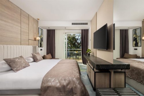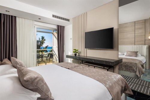 Renovované pokoje typu Superior o velikosti cca 20 m2 disponují vlastním sociálním zařízením, manželským lůžkem nebo dvěma oddělenými lůžky, fénem, minibarem (konzumace za poplatek), SAT/TV, klimatizací, telefonem, WiFi připojením a balkonem. Přistýlka je formou rozkládacího lůžka o rozměrech cca 75×184 cm a výškou 11 cm (vhodné jen pro dítě do 11,99 let), které se může vysouvat z manželského lůžka (viz. galerie). Za příplatek jsou k dispozici pokoje s výhledem na moře (možnost volby při rezervaci).