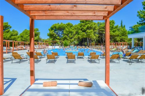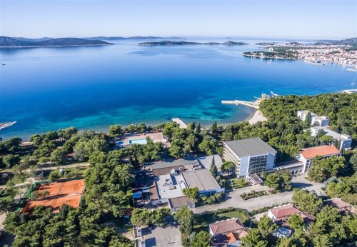 Hotelový komplex leží na okraji Vodice cca 1 km od centra a cca 50 m od oblázkové pláže s pozvolným vstupem do moře. Lehátka na pláži sjou za poplate.