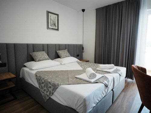 2lůžkové pokoje s možností 1 přistýlky (vytahovací postel), sociální zařízení, SAT TV, mobilní klimatizace, balkon, 17 m2.