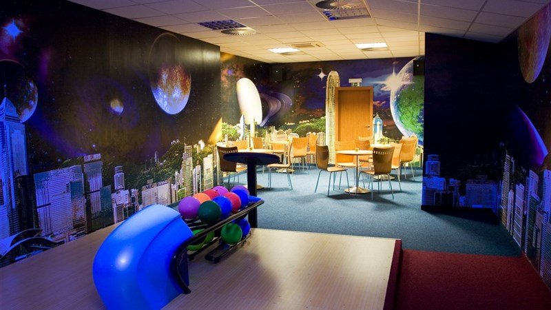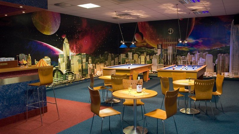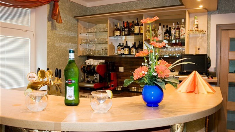 Recepce, klimatizovaná restaurace (slouží jen pro snídaně a příp. večeře), Wi-Fi internet, parkoviště, sportovně-zábavný areál:2 bowlingové dráhy, bowling bar, stolní tenis, stolní fotbal, kulečník, fitness. Wellness: finská, parní a infrasauna, odpočívárna, solárium. Hotel má 3 patra a nemá výtah.
