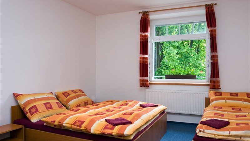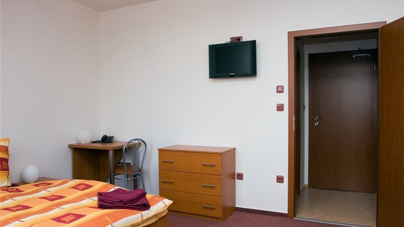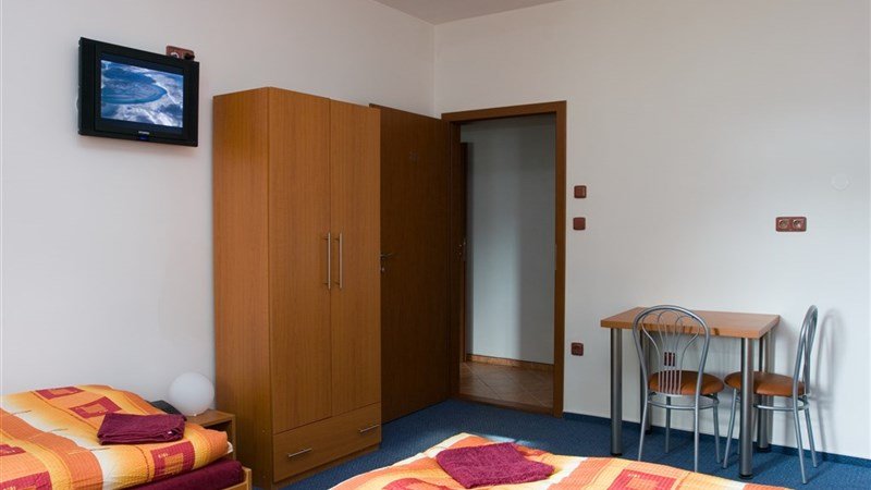 2 – lůžkové pokoje a 3 – lůžkové pokoje s dětskou přistýlkou(vytahovací spodní lůžko 90×200 m), Spr.+WC, SAT / LCD TV, přípojka na internet 4 – lůžkový aparmán – na ověření v CK, za příplatek. Ve 3 – lůžkové pokoji se 1 neobsazené lůžko neúčtuje (ovšem může být poskytnut 2 – lůžkový pokoj). Pokoje s balkonem nejsou k dispozici