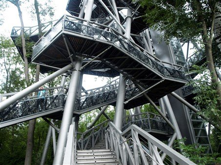 ukázky zahradní architektury, cesta do korun stromů 30 m nad zemí,