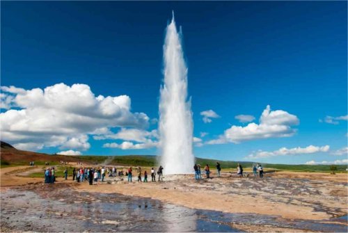 5. den (13.8.): Geysir – vodopád Gulfoss – Thingvellir – Sky Laguna Dopoledne zamíříte do oblasti tzv. Zlatého trojúhelníku. Nejprve zavítáte do oblasti gejzírů. Při pěší procházce pohádkovou vřídelní krajinou, nemineme ani „otce“ Geysira (již téměř nečinný), ani „syna“ o pár metrů opodál – gejzír Strokkur, který vystřikuje každých 10 minut proud horké vody až do výše 25 m. O pár kilometrů dále uvidíte nejznámější a prý i nejkrásnější islandský vodopád – Gullfoss („Zlatý vodopád“). Dále přejedete k národnímu parku Thingvellir, kde byl v r. 930 vyhlášen první demokratický parlament na Islandu. Mj. zde můžeme spatřit i tektonickou puklinu Aldmannagjá, která oddaluje Evropu a Ameriku.