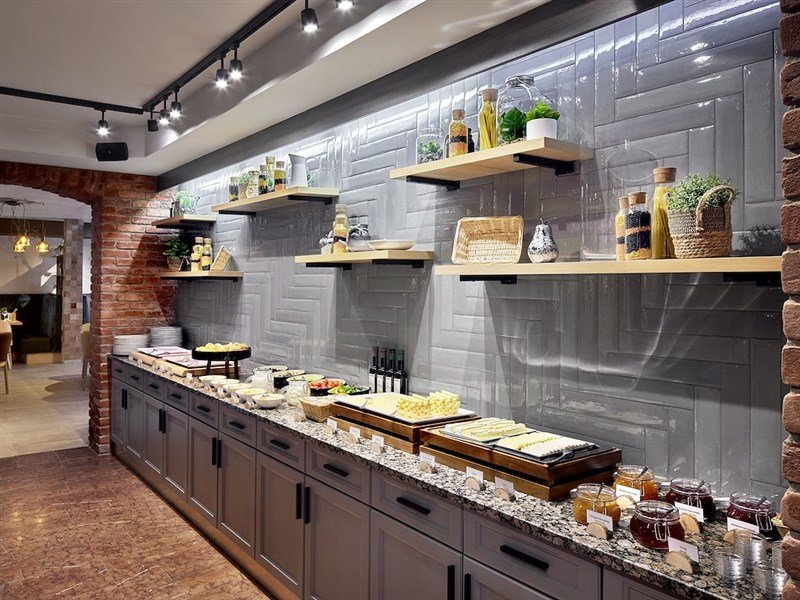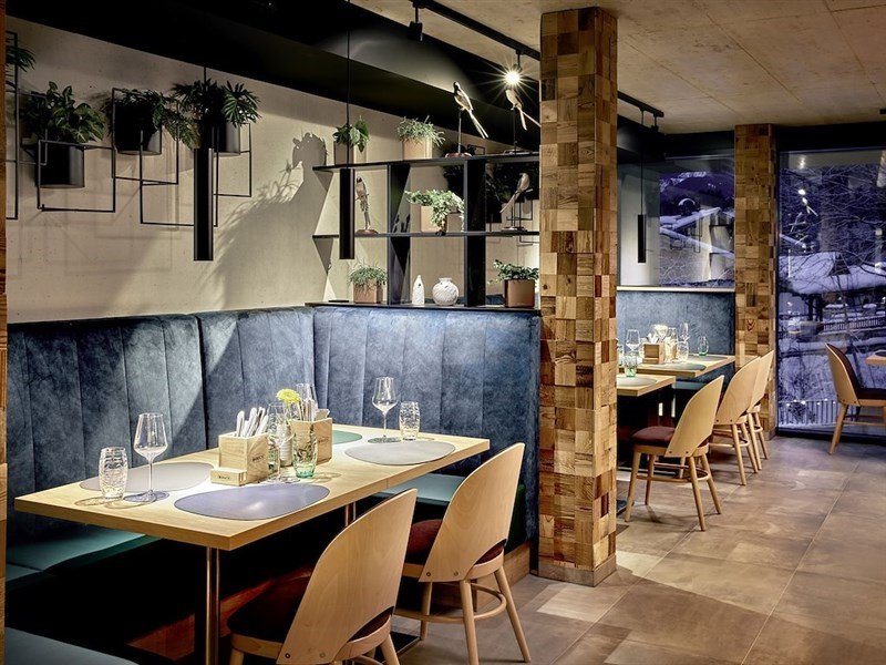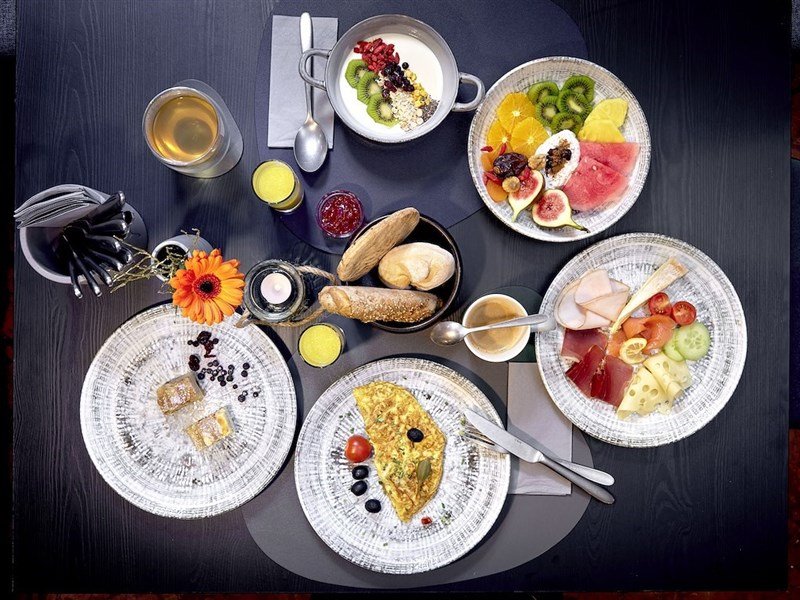polopenze: snídaně až do 12 h. – bohatá snídaně formou bufetu, regionální produkty, vegetariánské i veganské pochoutky. Večeře je formou bufetu (18–21 h.) s otevřenou kuchyní (front cooking). 24. 12. a 31. 12. slavnostní večeře.